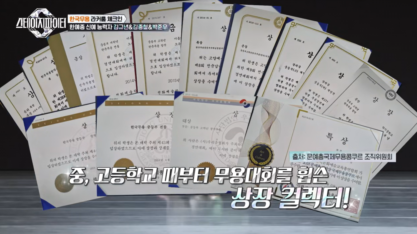 그리고 한국무용 파트에는 이 둘 외에도 너무나도 멋진 캐릭터들이 많다. 입도 코도 눈도 시원시원하고 춤사위도 시원~한 김시원 무용수(최시원이라고 최가로 잘못 써놨었어서 황급히 수정했다ㅎ). 이 무용수는 최호종 무용수와도 꽤나 다정해 보였는데, 보니까 무슨 인연인지 친구 모먼트가 있는 듯했다. 그리고 귀여운 기생오라비 같은 요새 잘나가는 김규년 무용수, 규년이 친구처럼 보였으나 더 독보적 춤사위로 매력 뿜뿜하는 박준우 무용수. 그리고 빼놓을 수 없는 김효준 무용수. 정확하고 절도있고 세련된 몸짓을 보여준다. 그리고 매튜 심사위원이 유독 푹 빠진, 나도 푹 빠진 수줍은 미소에 섹시 근육 장착 김종철 무용수까지... (아... 내가 벌써 이렇게 무용수들 이름을 많이 알게 됐구나 싶다) 하여간 한국무용이 이렇게 세련된 장르(미남 천국)였나? 앞으로 공연 많이 보러 다녀야겠다는 생각이 확 든다.