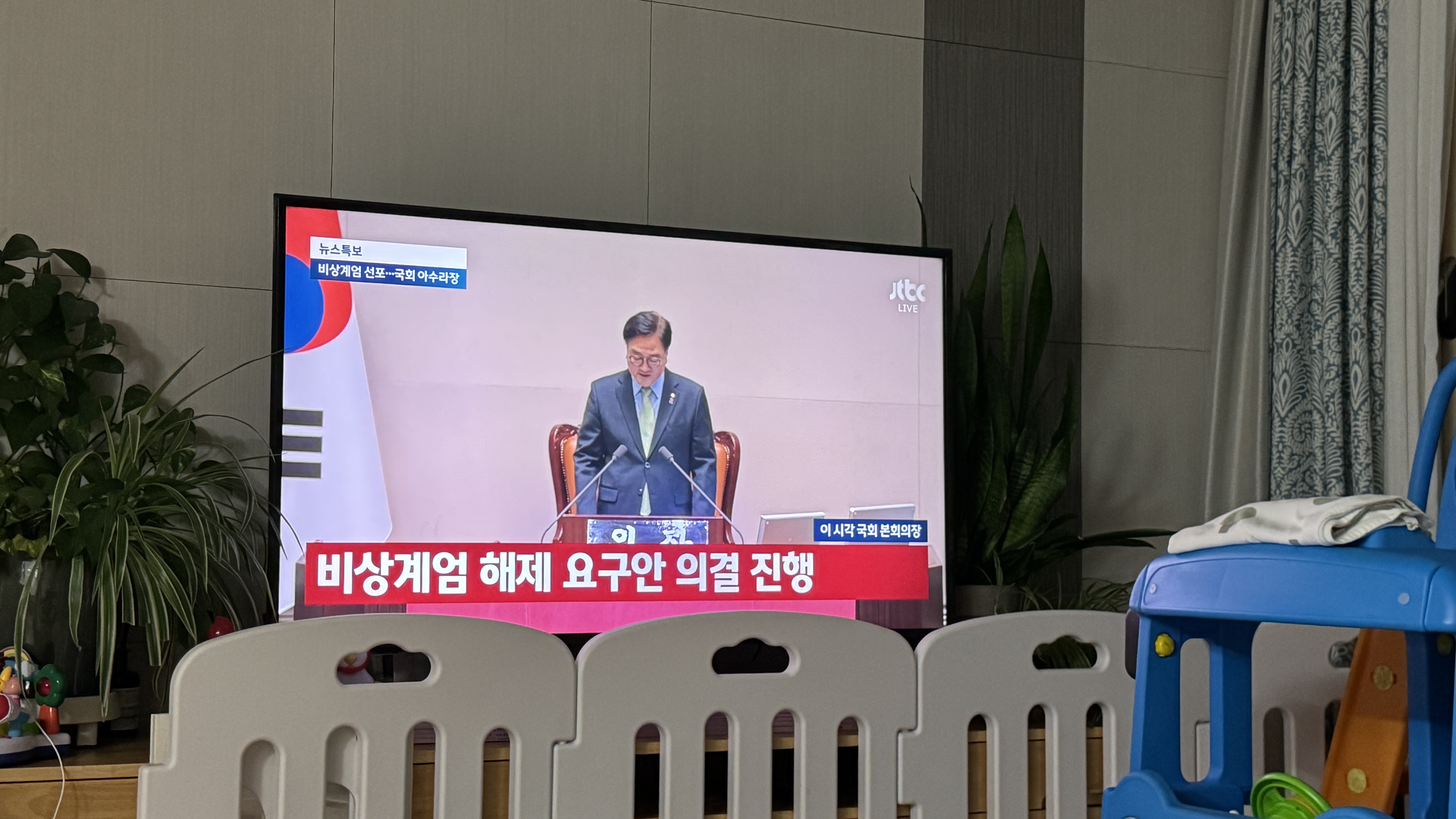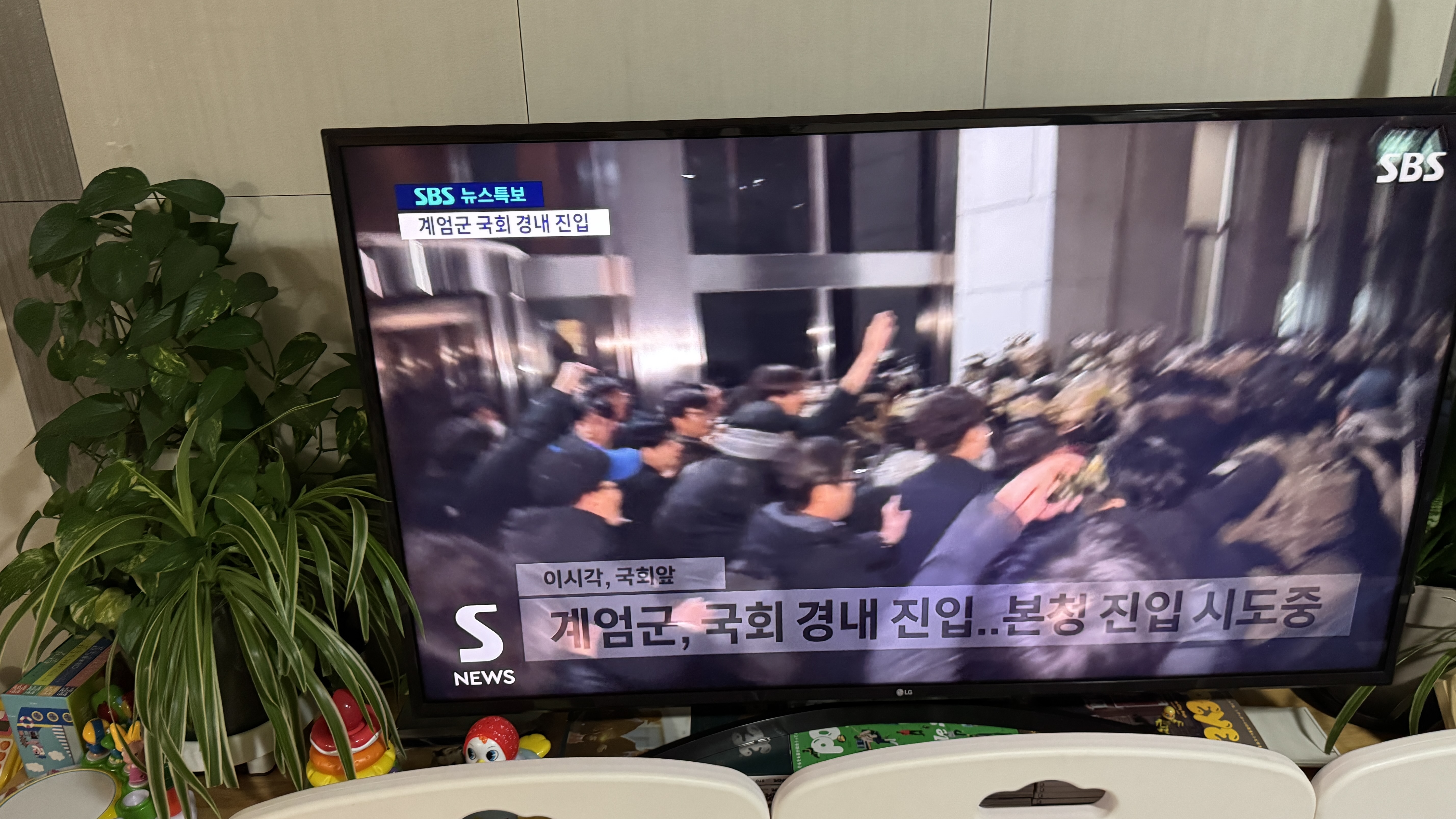 그렇게 한두 시간을 꼬박 뉴스를 찾아보고 티비 속보 뉴스를 보며 시간을 보냈는데 긴박하고 뭔가 초현실적인 상황(탱크가 서울 한복판에 나타나고 군인들이 국회를 쳐들어간다던지, 수방사라던지 서울의